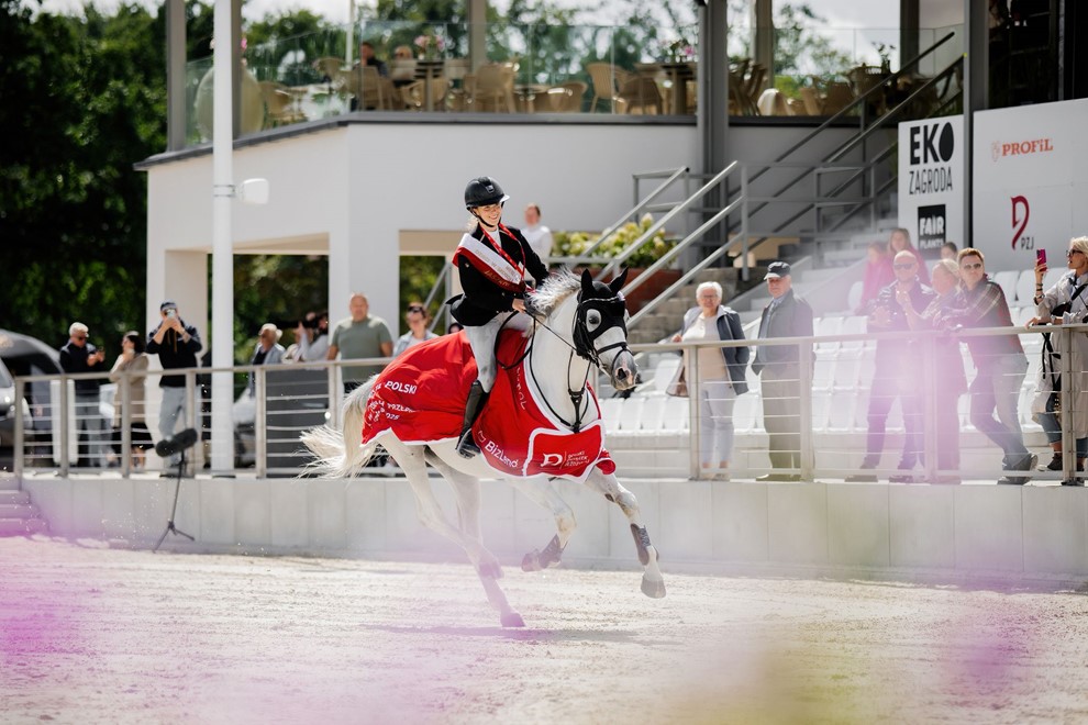 Milena Wójcikiewicz z RC Riding Center Sosnowice złotą medalistką Mistrzostw Polski w kat. Dzieci.